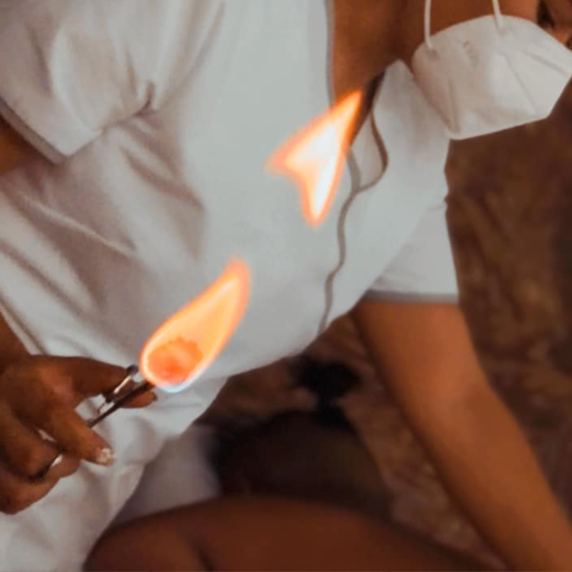 Masaje de relajación, Aplicación de calor relajante con compresas, Aplicación de ventosas relajantes, Mascarilla facial, Aromaterapia, Canapés para 1 persona, Agua fresca para 1 persona.