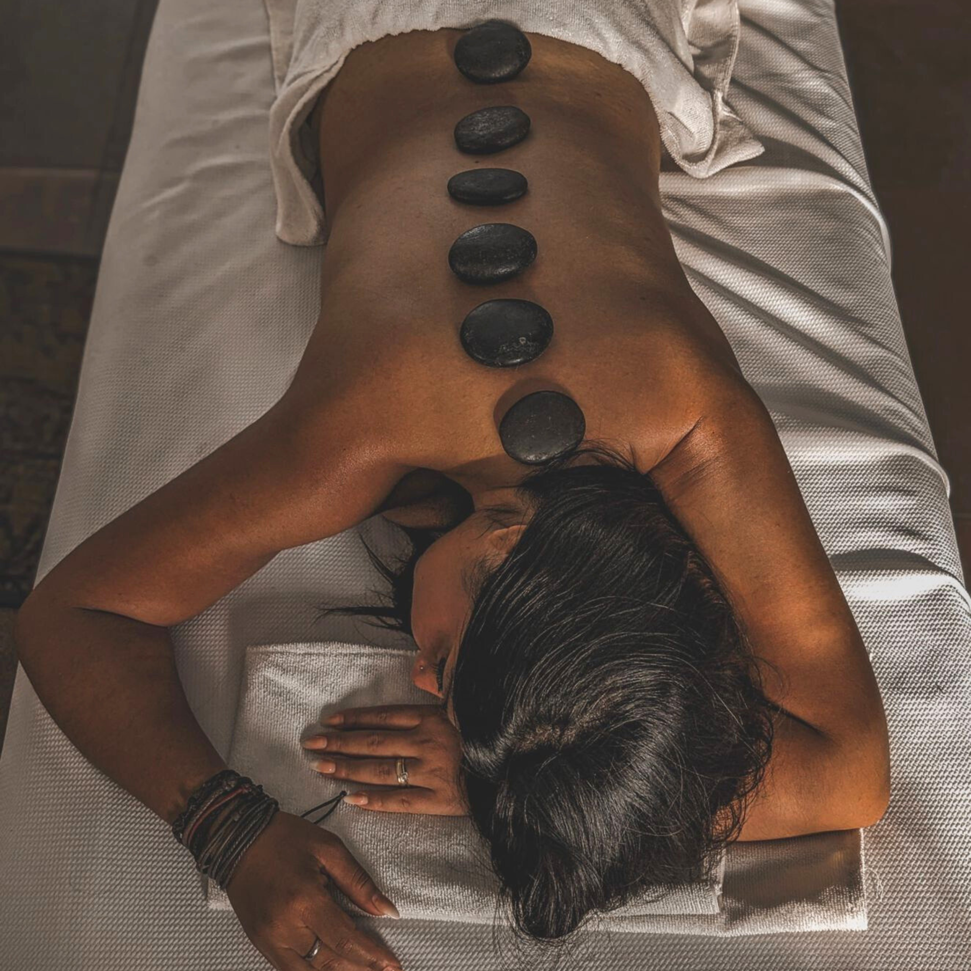 Masaje de relajación, Aplicación de calor relajante con compresas, Aplicación de ventosas relajantes, Mascarilla facial, Aromaterapia, Canapés para 1 persona, Agua fresca para 1 persona.
