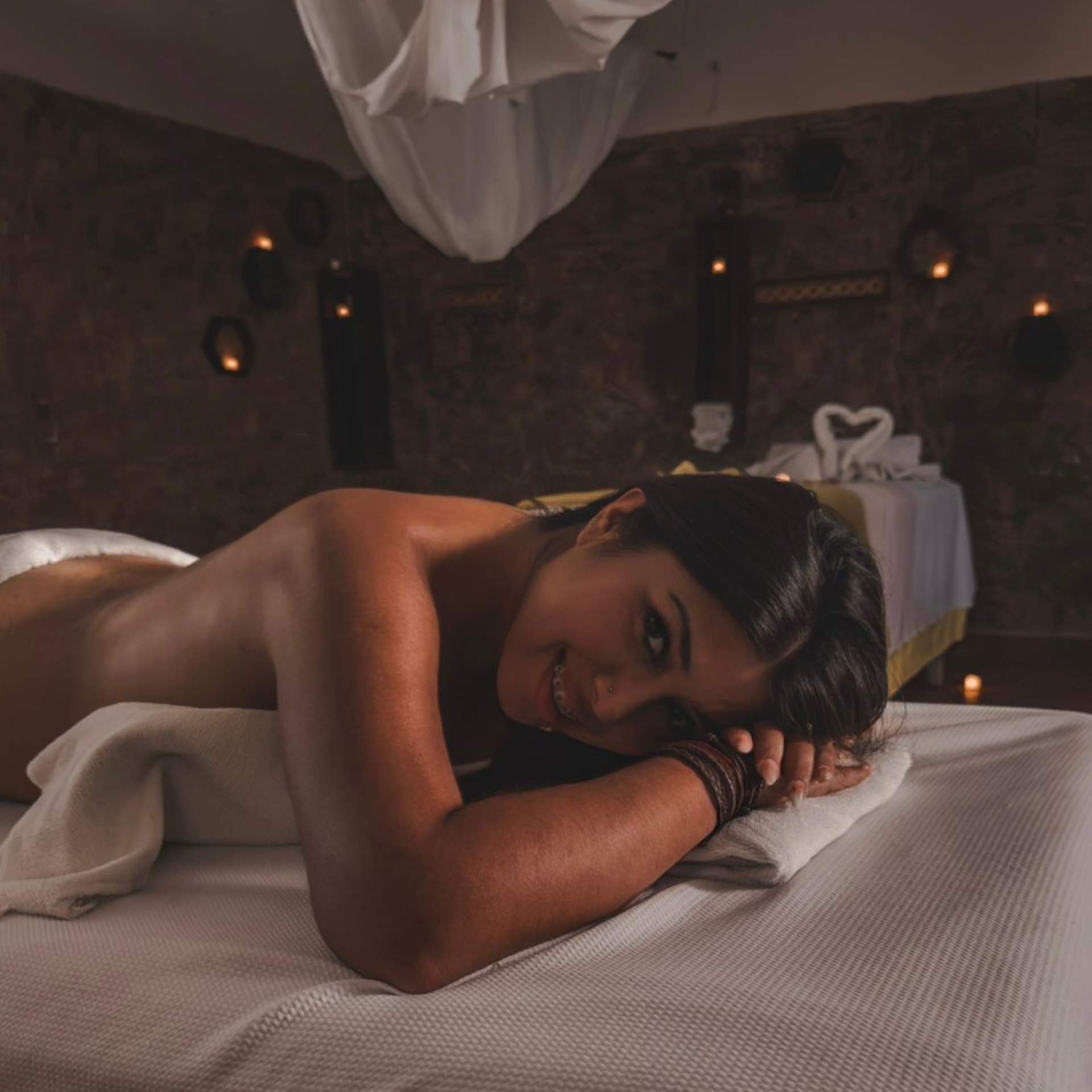 2 Masajes de relajación, 2 Sesiones de temazcal (Individual), Aplicaciones de calor relajante con compresas, Aplicaciones de ventosas relajantes, Mascarillas faciales, Aromaterapia para 2 personas, Canapés para dos personas, Agua fresca para dos personas.